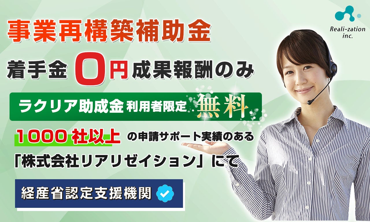 【補助金】リアリゼイション、事業再構築補助金「ラクリア助成金」活用企業「着手金無料、成功報酬のみ」の新プラン発表!