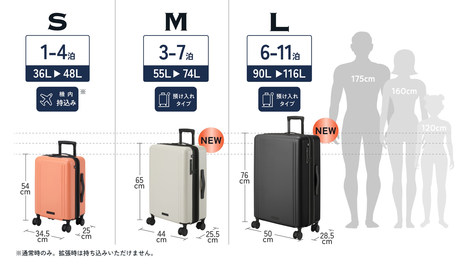 【MAIMO】脅威の拡張率で大好評スーツケース「ZIPUP」に待望のM、Lサイズが新登場!