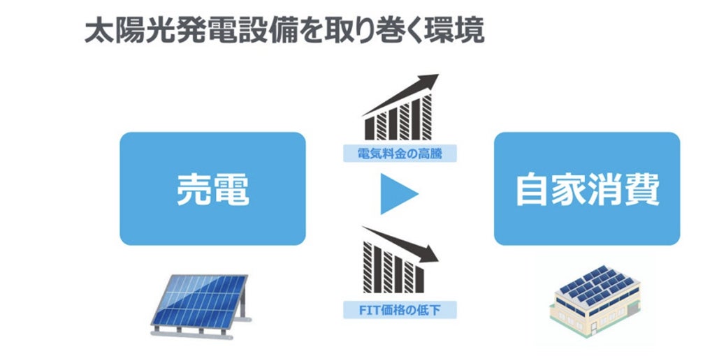 太陽光発電設備の導入は、FIT価格の低下やメガソーラーの買取制度の廃止検討により、売電を主目的とする新規導入が縮小傾向にある一方、再エネ主力電源化方針の加速やESG投資・SDGsへの関心の高まりを背景に、建物の屋根等に設置する自家消費型太陽光発電設備の導入が拡大しています。近年の電気料金高騰を受け、自家消費型太陽光発電は、電力コストの抑制手段としての経済合理性が高まっているほか、企業のRE100対応やカーボンニュートラルへの対応、取引先からの脱炭素要請への対応といった観点からも、多くの事業者にとって重要性が増しています。