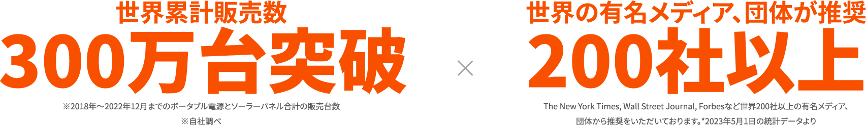 ※2018年~2022年12月までのポータブル電源とソーラーパネルの世界合計販売台数。自社調べ。