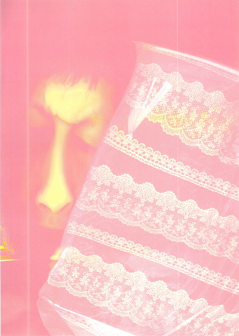 街のコンビニと施設のコピー機を使って、自分の顔とその時々の気に入ったものを写し取ることを毎日の日課としている。ガラス面に顔を押し付け自分でボタン操作し、センサー光の動きと共に身体を動かすことで、画面に独特の歪みを作り出す。作品中に多用されるシールは、施設でのアルミ缶作業中に剥がした景品応募シールで、これまで何度も当選している。近所のコンビニには20年あまり毎日通っており、終わると店員が手際よくガラス面についた顔の脂を拭いてくれる。