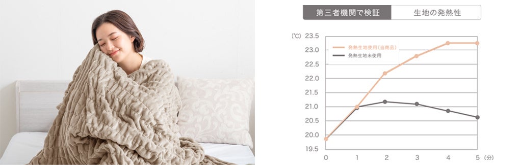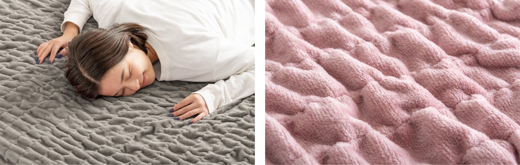 【タンスのゲン】湿気を吸収して熱を発するブランケット新発売波打つような造形がくしゅっとかわいい“くしゅぽかケット”