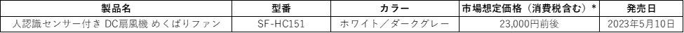 製品名:人認識センサー付き DC扇風機 めくばりファン