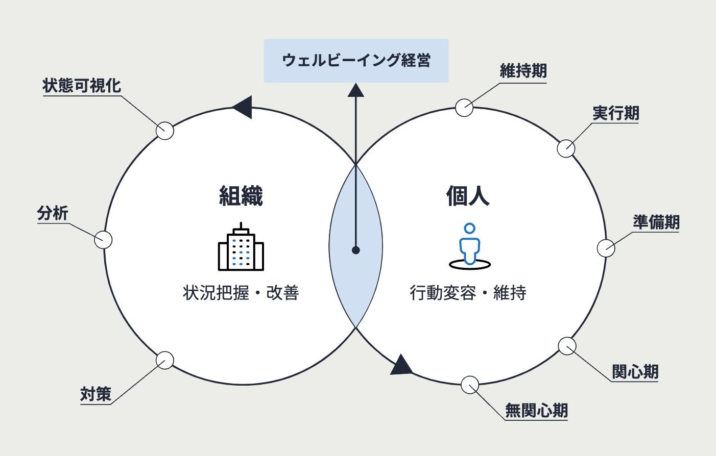 個人がウェルビーイングな状態で働くことができれば、パフォーマンスや業績のアップ、組織力の向上につながります。