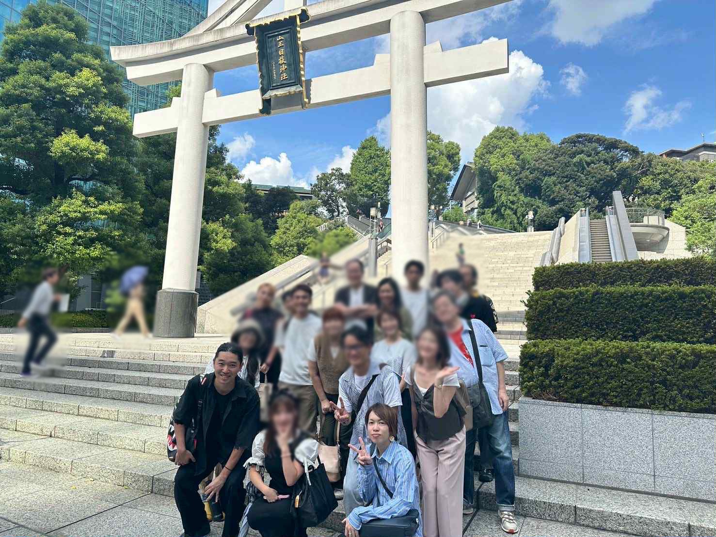 特に日枝神社では、特徴的な「狛猿(神猿・まさる)」や広大な敷地に参加者から驚きの声が上がり、都会の中心に残る聖域として心落ち着く時間を体感。また、参拝中に行われていた結婚式の太鼓の音も印象的でした。