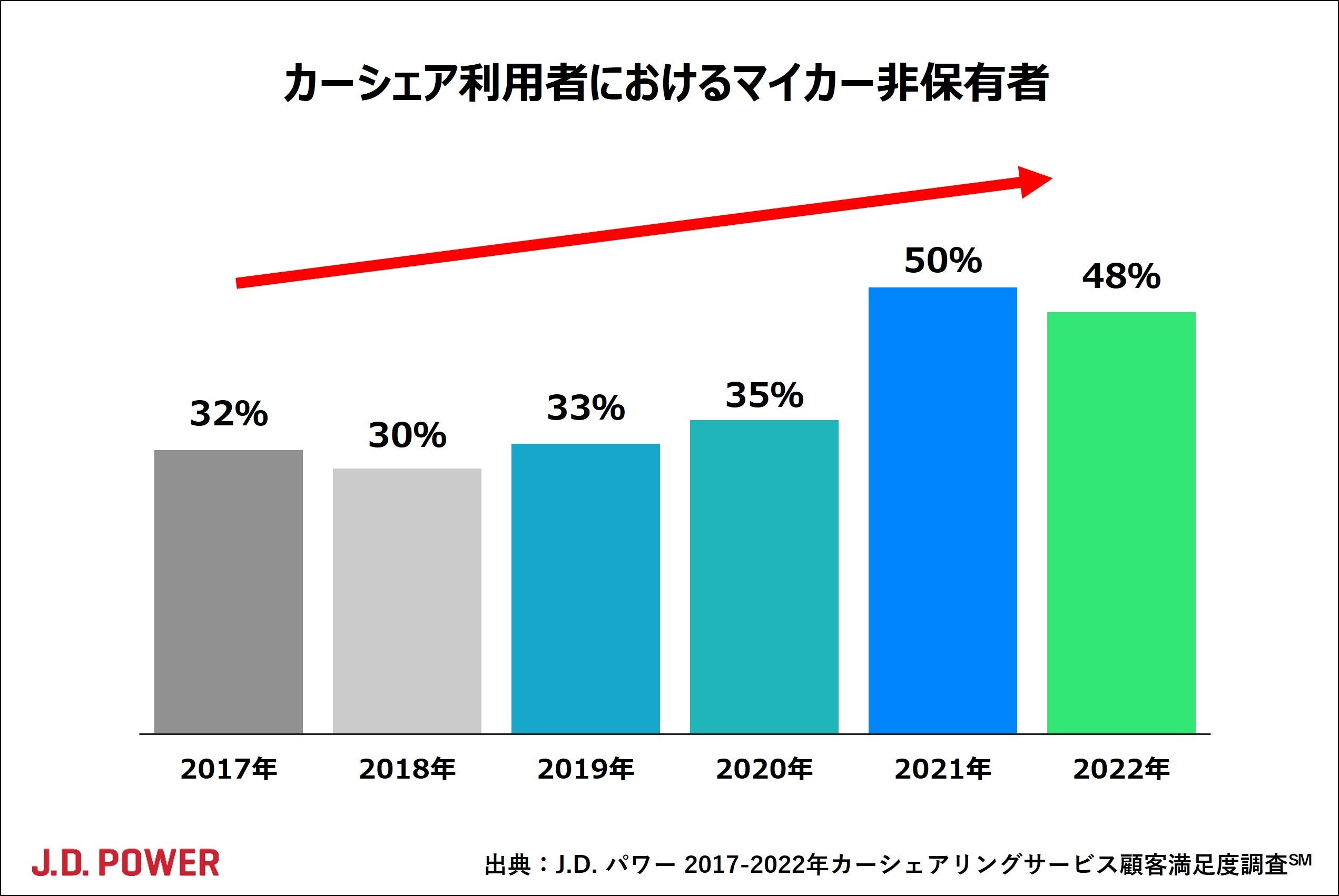 カーシェア利用者、マイカーを持たないユーザー層の割合が約半数と高止まりの状況