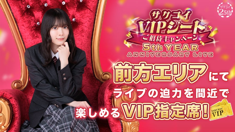 このたび「サクコイ」では、2.5周年を記念し「サクコイVIPシートご招待キャンペーン~5th YEAR ANNIVERSARY LIVE~」を1月26日(月)15:00より開催いたします。