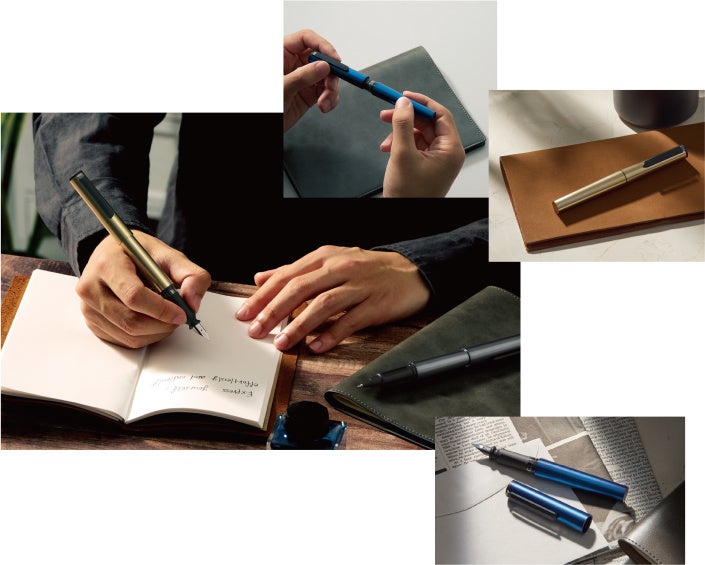 「万年筆を正しい向きで持つ」のではなく「万年筆が正しい向きになってくれる」機能を搭載した万年筆と、同じデザインで合わせて持てるボールペンをラインアップ。