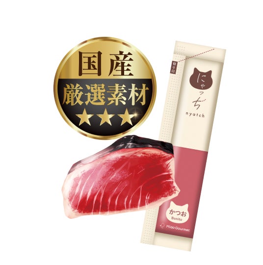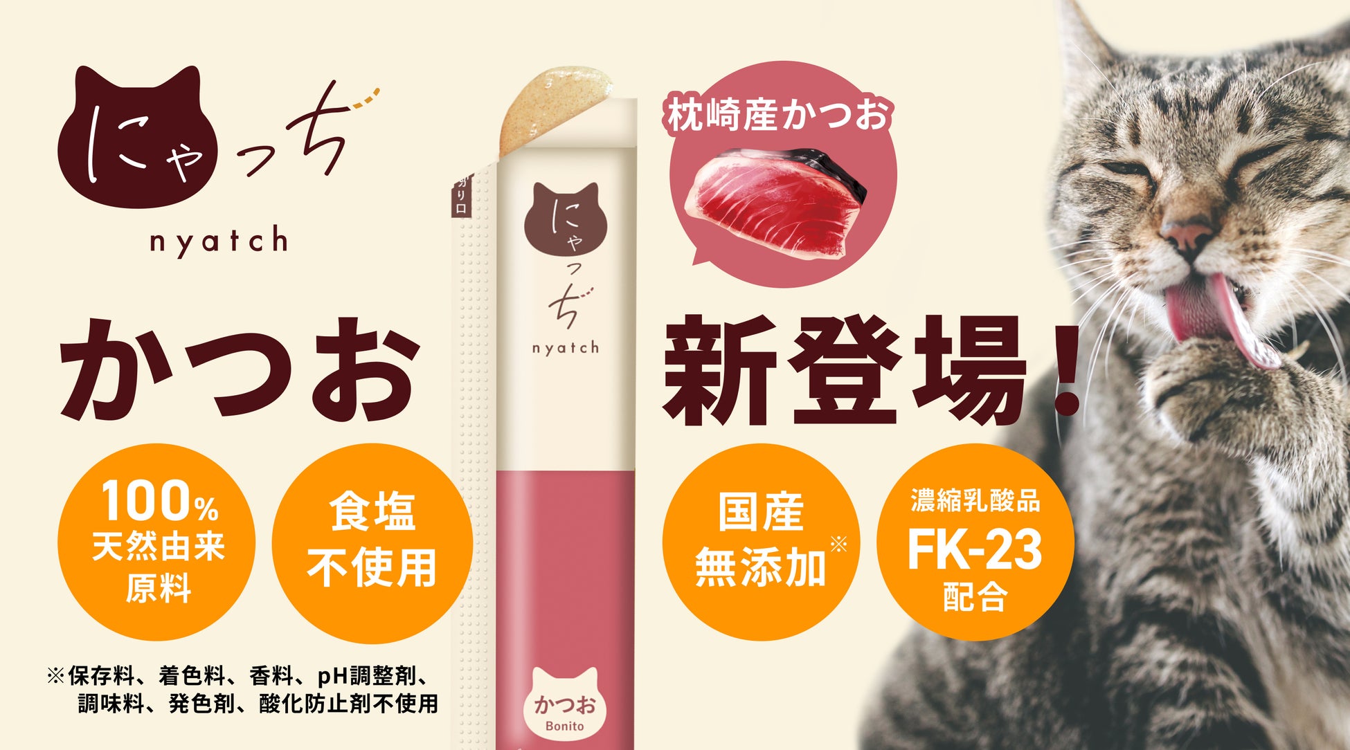グルメなお猫様も大喜び!国産の無添加ピューレ「にゃっち」から、新フレーバー・かつお味が新登場。