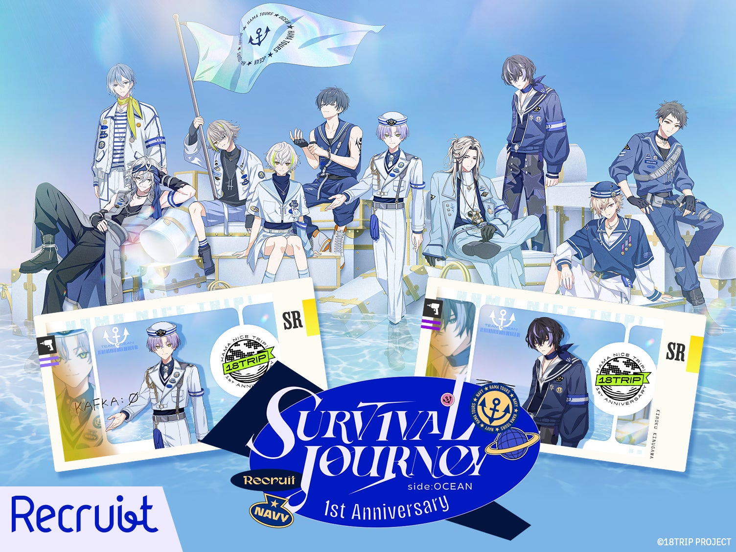 区長20人が海と空の2チームに分かれた1周年記念キービジュアルイラストを使用した、イベント旬効果付きのSRカードが登場!