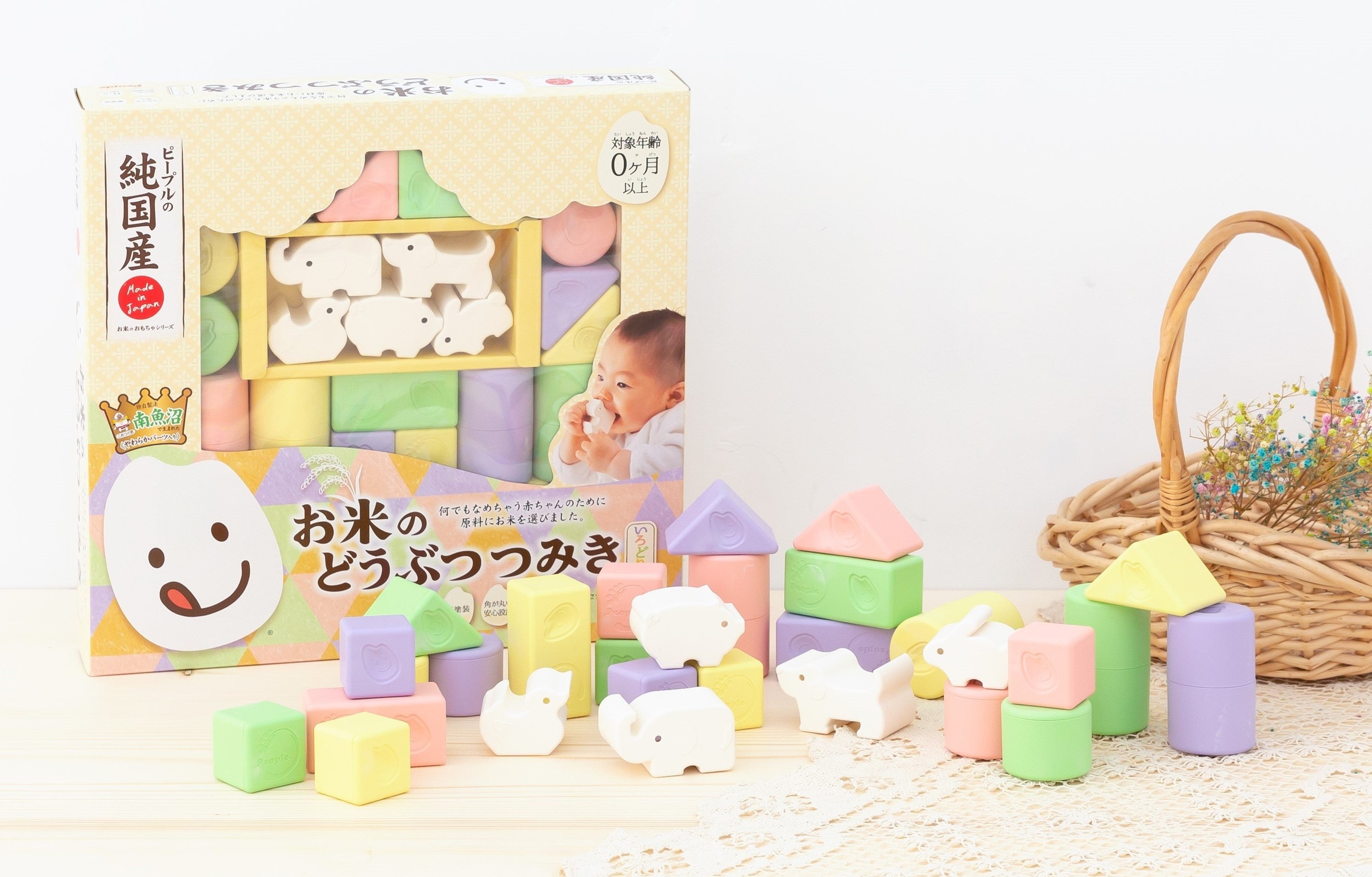 原料は契約農家で作られた国産米、製造も日本国内で行っている「純国産」の安心感は、大切なお子さまのはじめてのおもちゃや、出産祝いやお誕生日祝いの贈り物として、累計100万人以上のお客様から選ばれています。