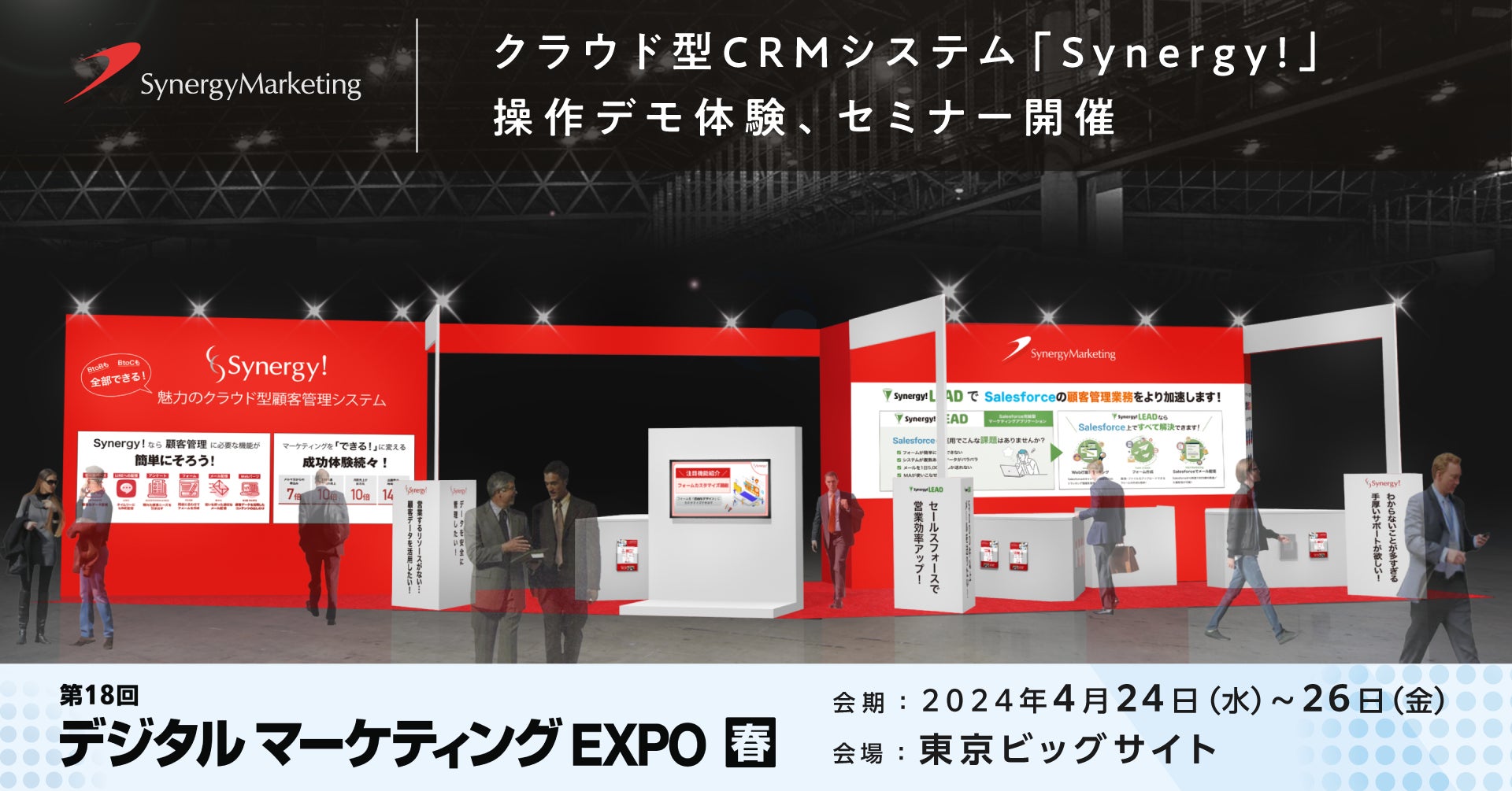 シナジーマーケティング株式会社(所在地:大阪市北区、代表:奥平 博史、以下当社)は、2024年4月24日(水)~4月26日(金)に東京ビッグサイトで開催される日本最大級のIT展示会「Japan IT Week 春」内の専門展「第18回デジタルマーケティング EXPO」にブース出展します。