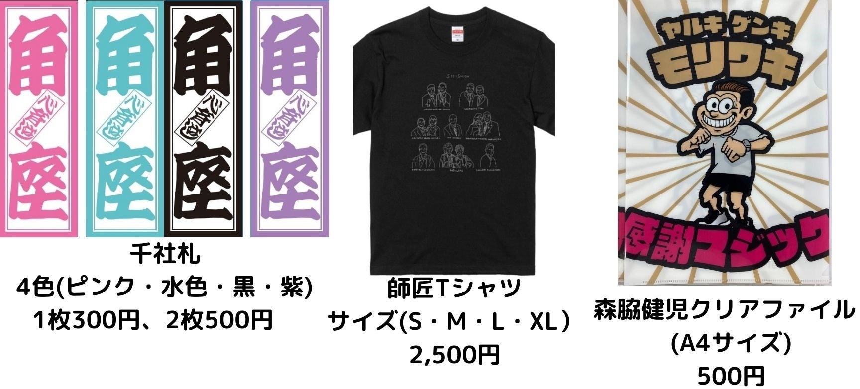 8/6(土)の師匠フェスに出演する師匠を絵柄にしたTシャツ