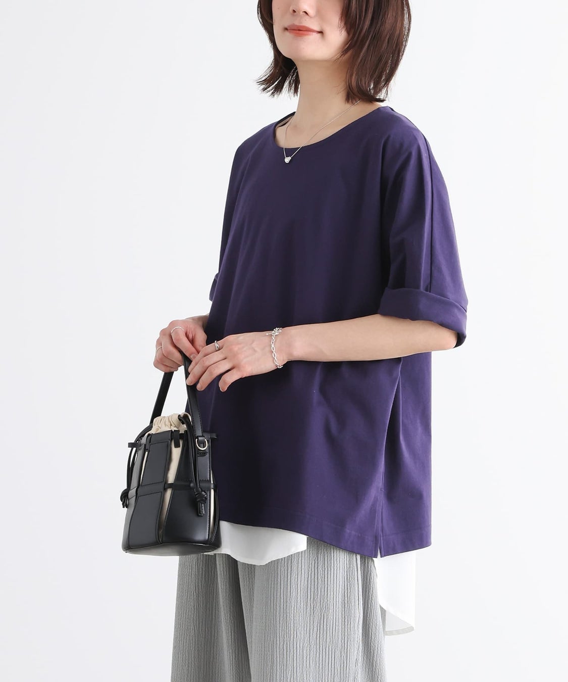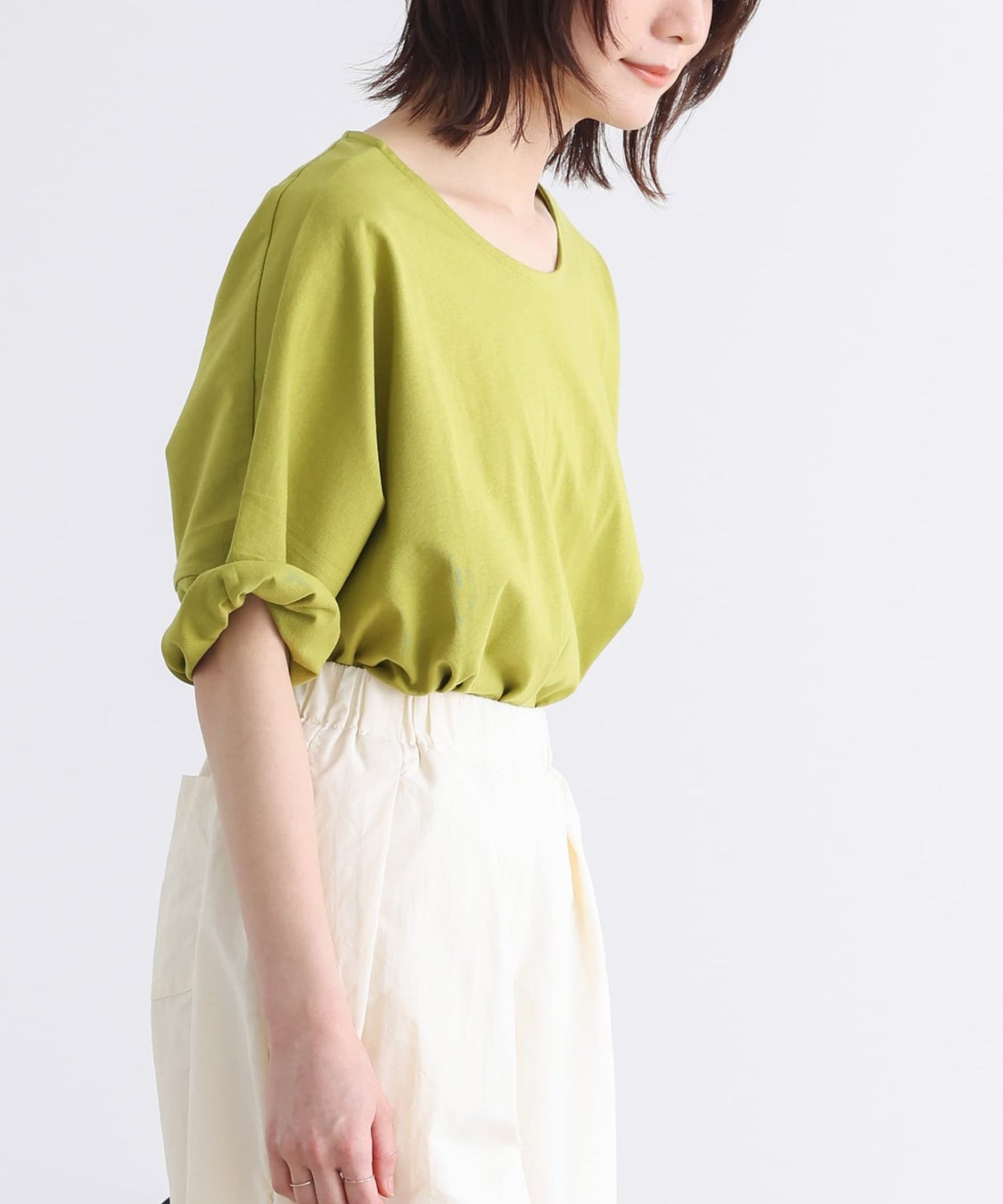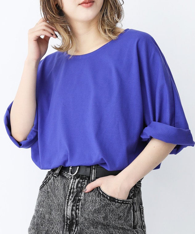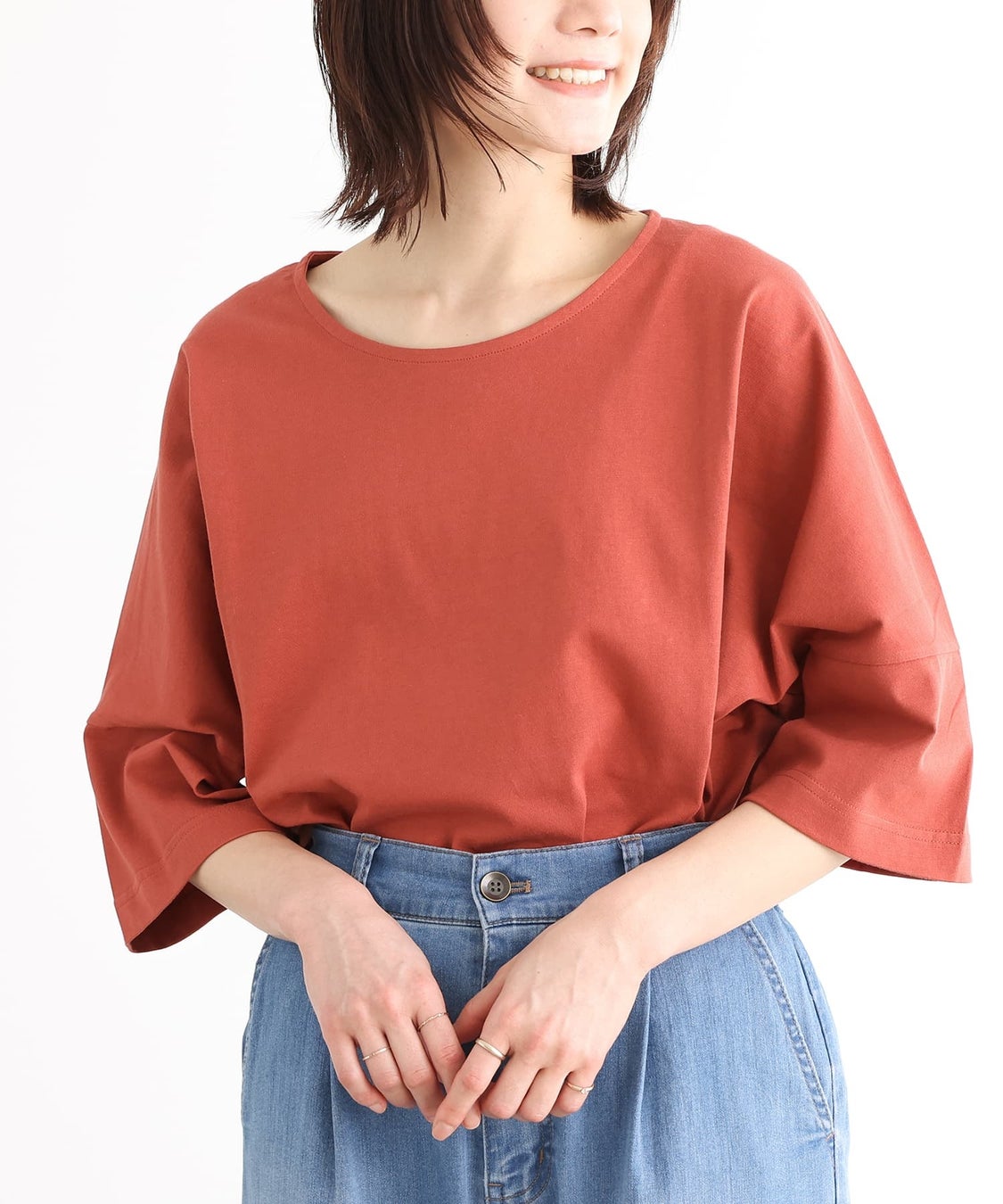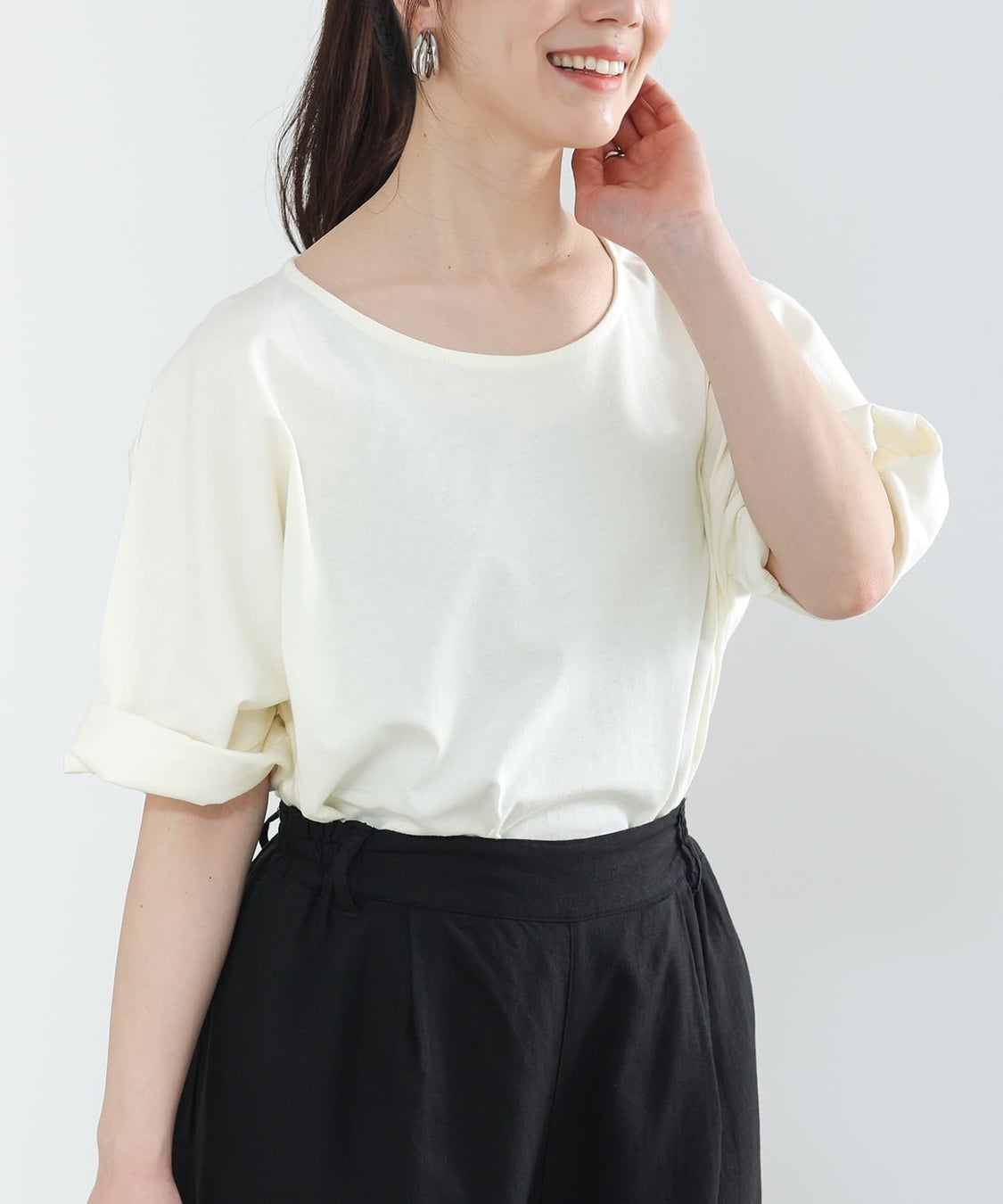ただのシンプルなTシャツではなく、気になる二の腕やヒップ回りもしっかり隠しながら、着るだけでこなれ感のあるゆったりとしたシルエットが魅力です。