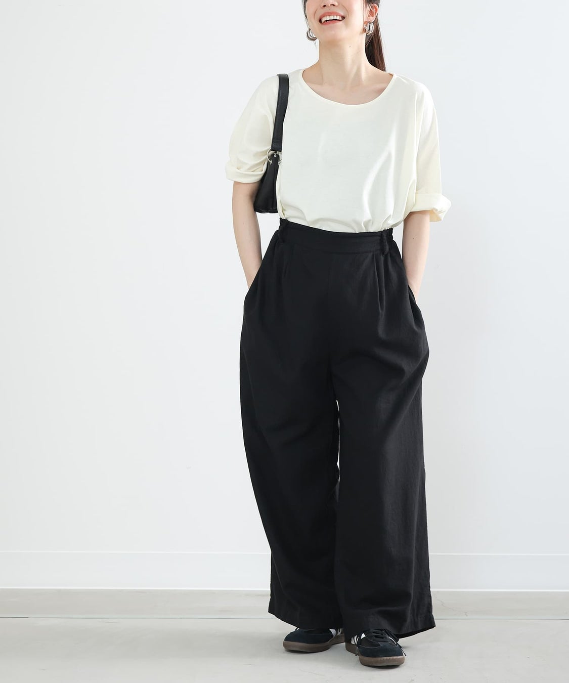 ゆったり大きめのサイズ感だと重たく見えがちですが、程よくデコルテの見えるUネックと両脇にはスリットを入れて抜け感を出しました。