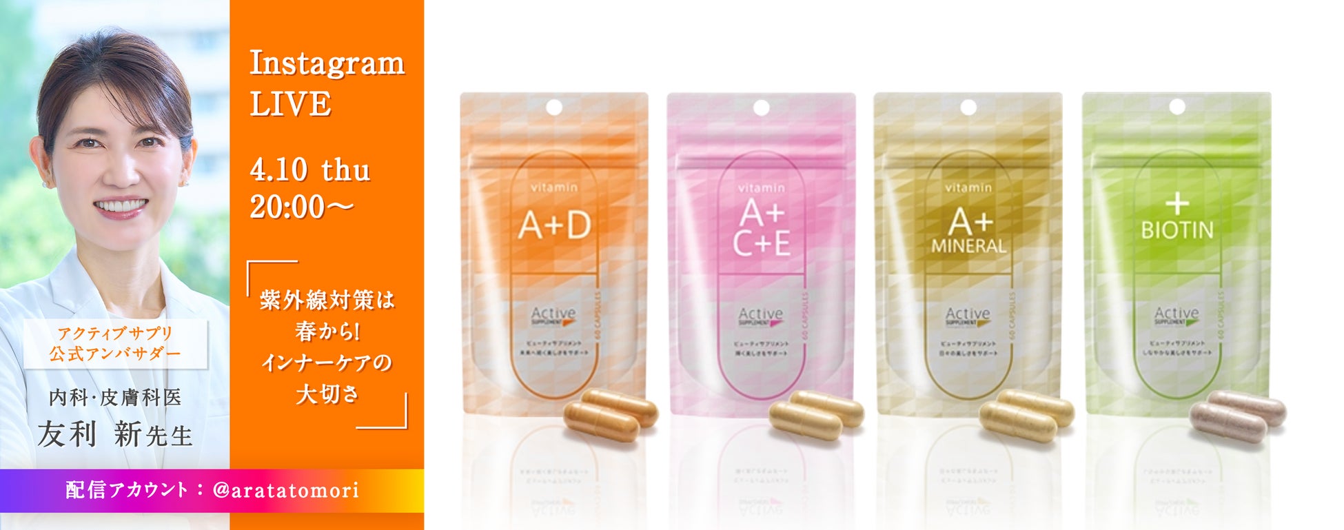 「アクティブサプリ」公式アンバサダー 友利 新先生とのインスタライブ 4月10日(木)配信決定!