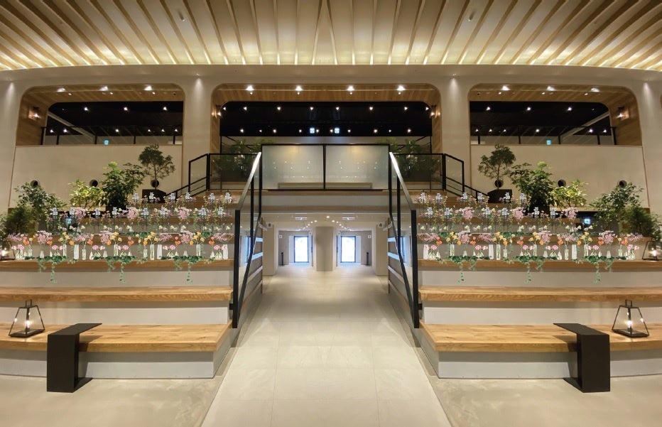 杜の街プラザの中央丘をお花畑に。色とりどりの生花やアーティフィシャルフラワーで彩り、華やかに演出します。