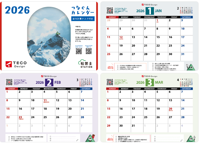 【好評につき増刷決定】給与計算・労務タスク付き「2026年つなぐんカレンダー」