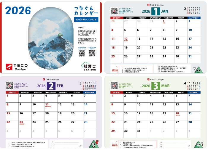 株式会社TECO Design(本社:東京都新宿区、代表取締役:杉野 愼)は、人事・労務担当者向けに無料配布している「給与計算タスク付き2026年つなぐんカレンダー」について、想定を上回る反響を受け、このたび増刷を決定し、先着100名限定での無料配布を再開いたしました。