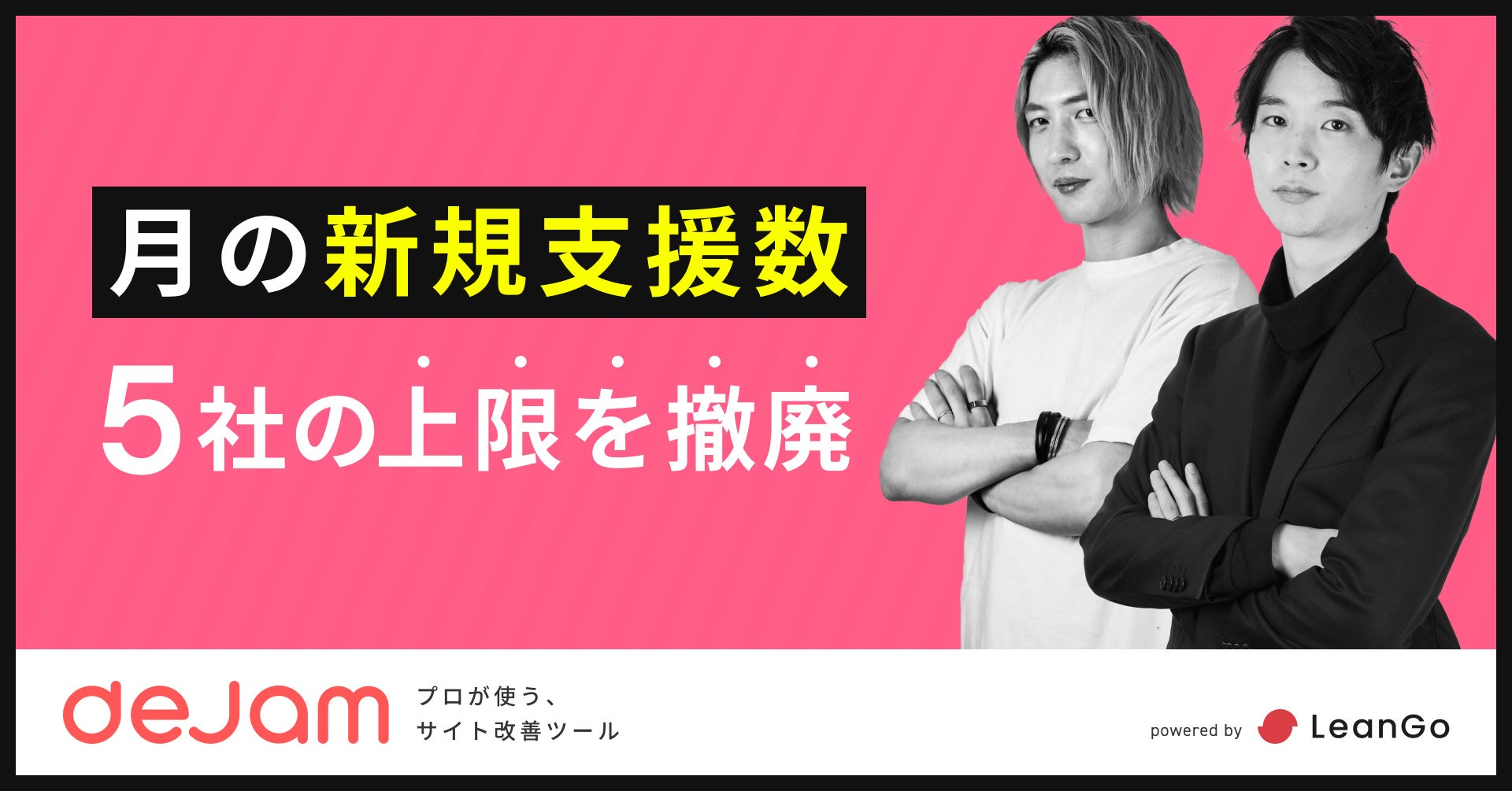 月の新規支援数5件の上限を撤廃 | Webサイト改善ツール「dejam」