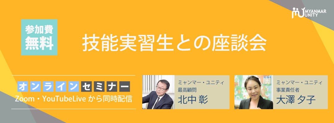 この度、ミャンマー政府認定No.1人材送り出し機関「ミャンマー・ユニティ」は、ミャンマー・ユニティの日本で実習中技能実習生の生の声が聞ける「技能実習生との座談会」を4月27日に、オンラインで無料にて開催いたします。
