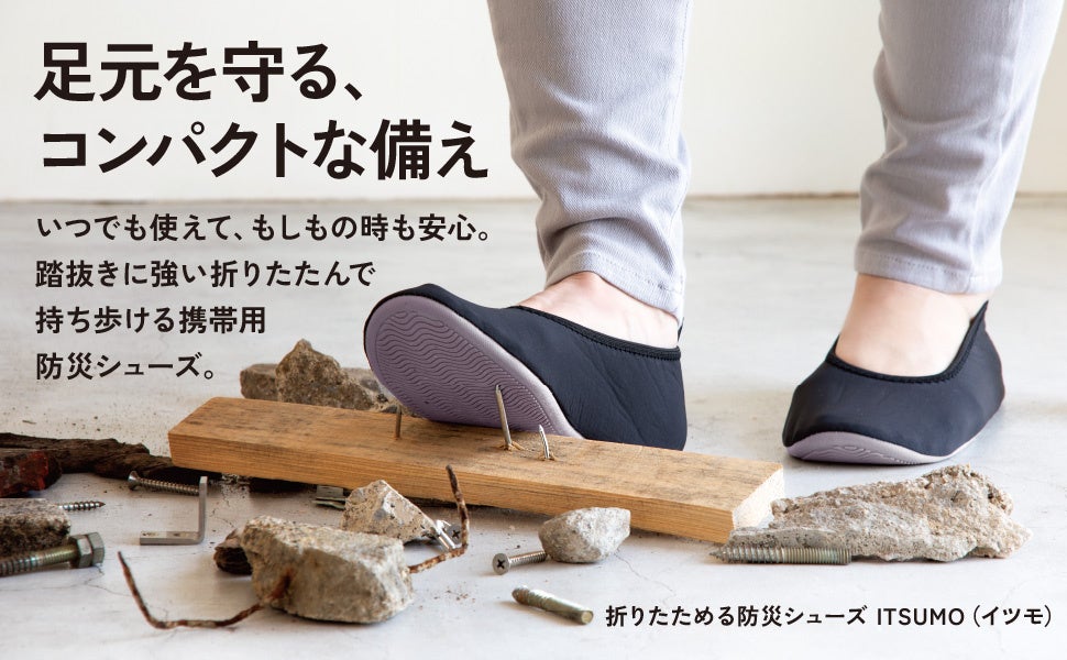 足元を守る、コンパクトな備え。『折りたためる防災シューズITSUMO(イツモ)』新発売