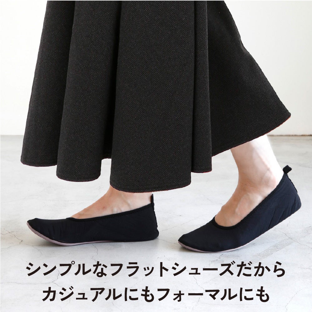 シンプルなフラットシューズだから、カジュアルにもフォーマルにも