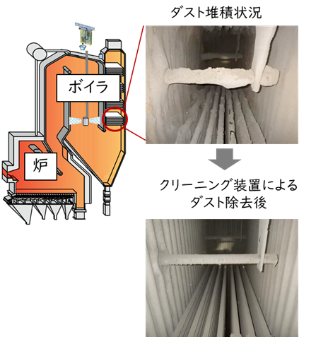 近年、廃棄物焼却施設は発電所としての機能も担っており、燃焼熱を回収し蒸気を作るボイラーの性能が重要となっています。廃棄物焼却炉において、ボイラー伝熱面へのばいじん(ダスト)付着は熱効率低下の主要因であり、その除去は施設の安定稼働および経済性確保の観点から不可欠です。