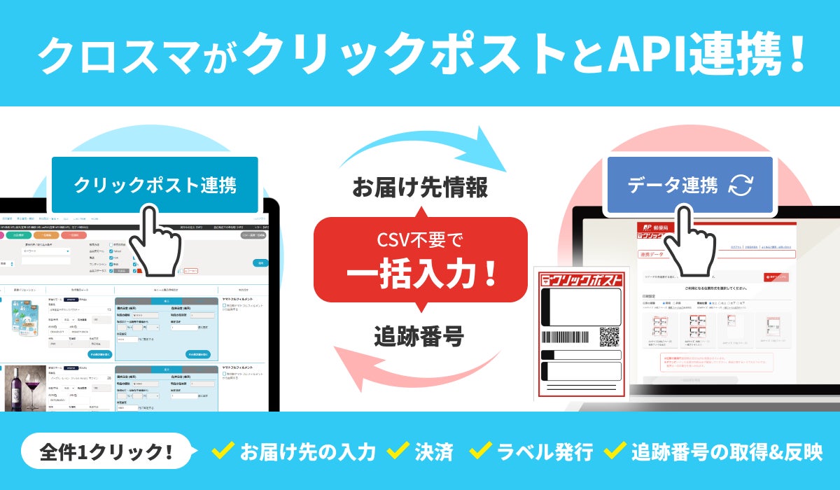【クロスマ】がクリックポスト拡張機能とAPI連携! CSVや手作業が一切不要に