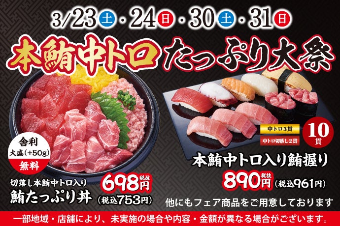 持ち帰り寿し店の「⼩僧寿し」「茶⽉」を運営する株式会社⼩僧寿しは、「⼩僧寿し」にて 3月23日(土)~24日(日)・30日(土)~31日(日)の期間限定で、「本鮪中トロたっぷり大祭」を開催致します。