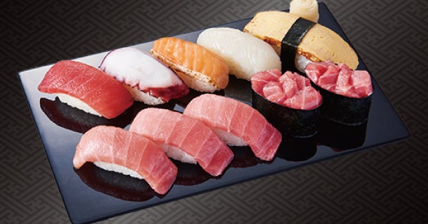 豪華ネタ本鮪中トロと、焼サーモンやタコなど人気ネタなど10貫盛り!