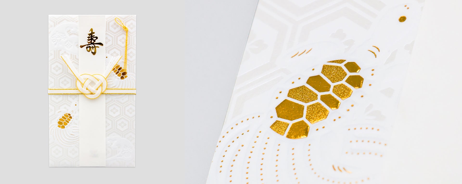 水引やのしの素材にもこだわり、テクスチャ加工による凹凸が高級感を演出します。
