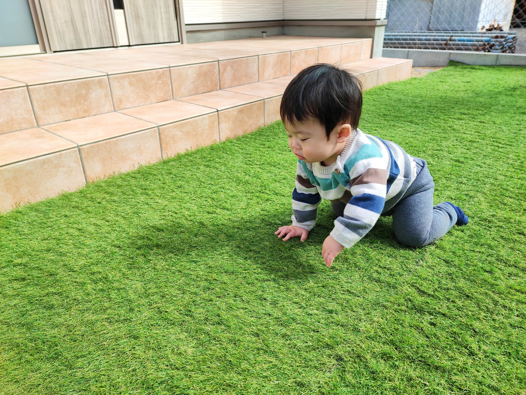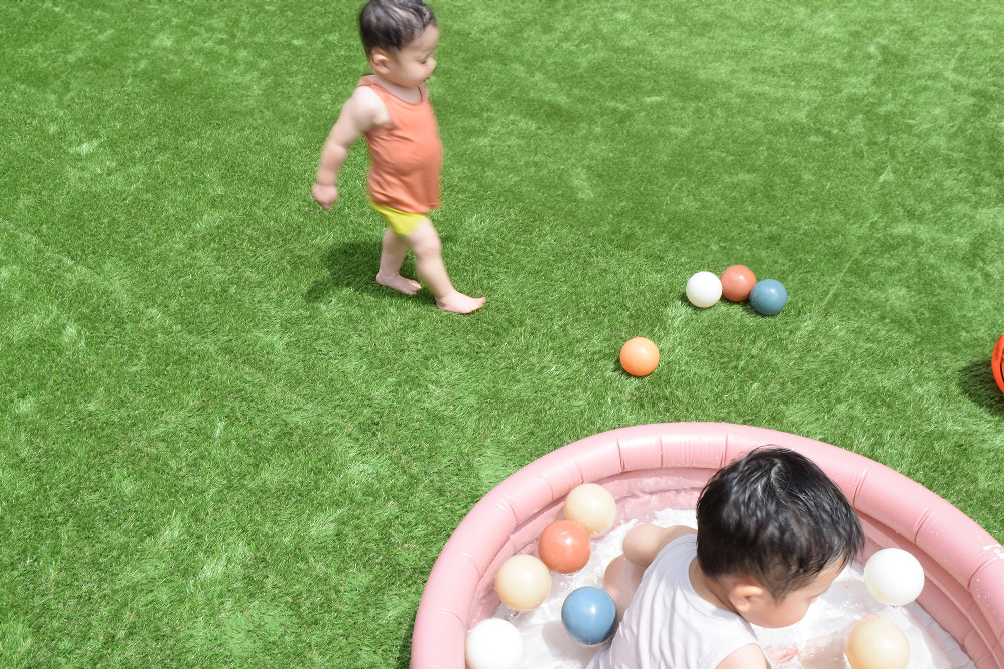 人工芝の最大の魅力は、天然芝と異なり「水やり・肥料不要・草刈り不要」なところ。手間をかけずに、1年中鮮やかな緑を楽しめます。子どもやペットの遊び場としても最適です。