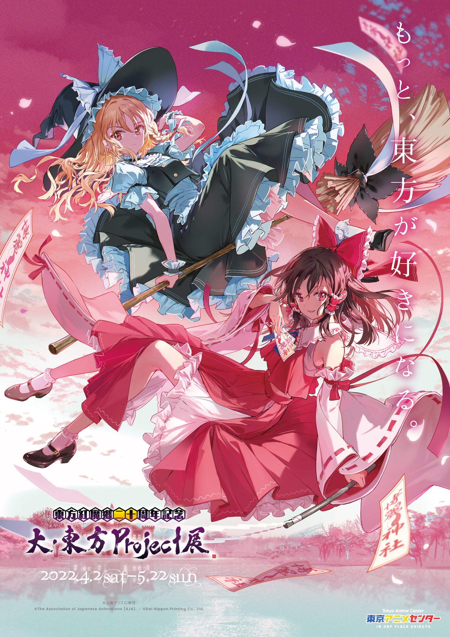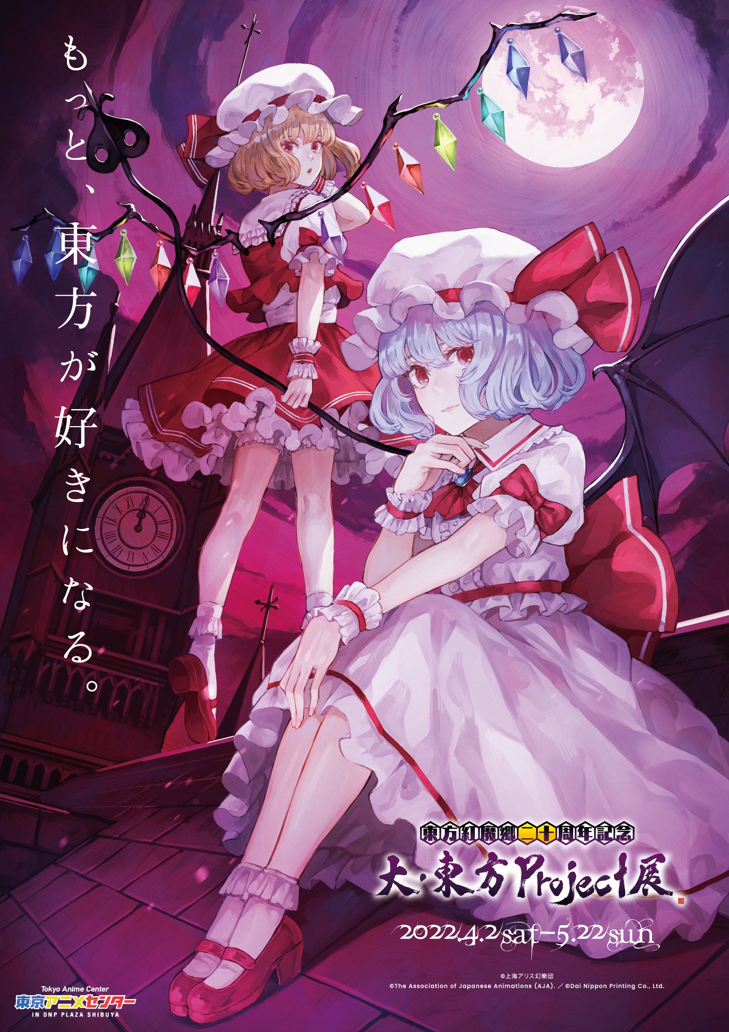 大日本印刷株式会社(DNP)は、4月2日(土)~5月22日(日)、東京・渋谷で運営している「東京アニメセンター in DNP PLAZA SHIBUYA」にて、「東方紅魔郷二十周年記念 大・東方Project展」を開催します。東方紅魔郷(とうほうこうまきょう)は、同人サークル上海アリス幻樂団が制作するシューティングゲームです。本企画展はこのゲームを推進する東方Project公認のイベントとして、全ての原作作品と二次創作の世界に触れる新しい体験をファンに提供します。入場者にはノベルティとして、二次創作イラストの展示をバーチャルで体験できる「紅魔館 VR画廊」の入場シリアルナンバーを配布します。