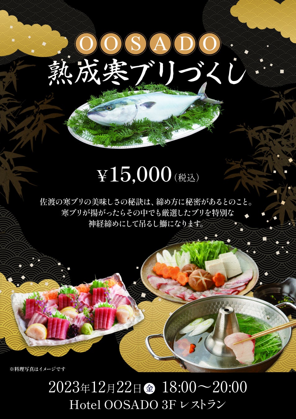 【先着20名限定】HOTEL OOSADO「佐渡の熟成寒ブリづくし」12月おすすめ企画