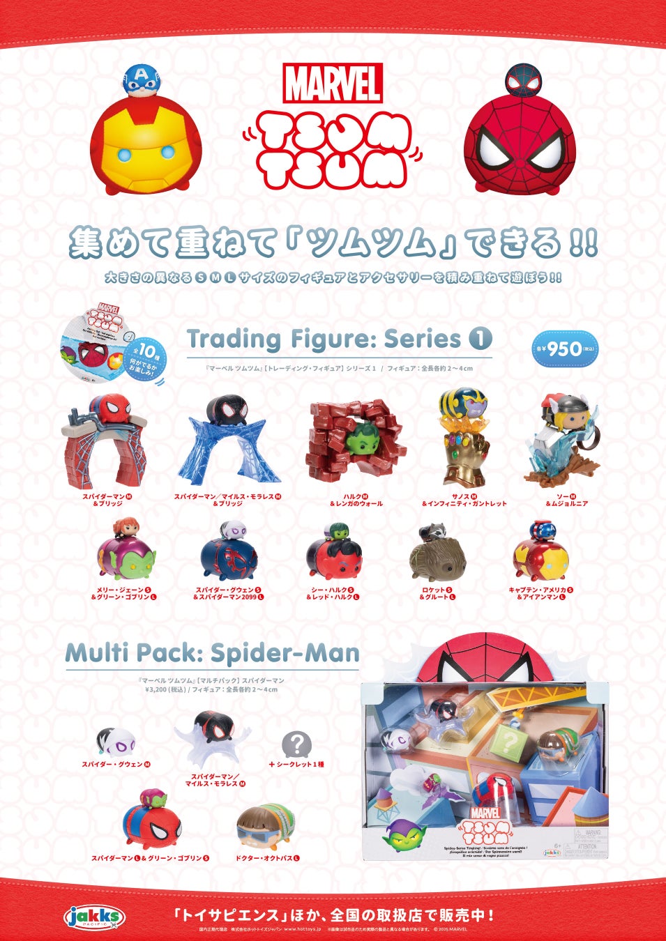 第1弾となる、『ディズニー ツムツム』 /『マーベル ツムツム』の「トレーディング・フィギュア」シリーズ1と、「マルチパック」のリロ&スティッチ/スパイダーマンも大好評発売中!