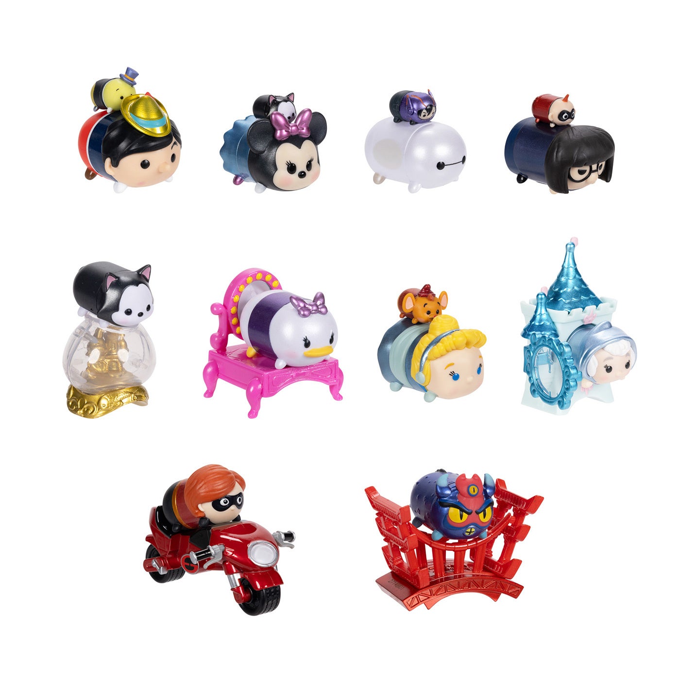 『ディズニー ツムツム』、『マーベル ツムツム』、『スター・ウォーズ ツムツム』の人気キャラクターを、全長約2~4cmのフィギュアとして立体化!大きさの異なるS・M・Lサイズのフィギュアとアクセサリーが存在し、積み重ねて遊ぶことができる。「トレーディング・フィギュア」となる本アイテムには、サイズの異なるフィギュア同士のペア、または、フィギュアとアクセサリーのセットがランダムに入っている。それぞれラインナップは全10種だ。