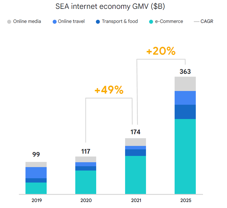 ※出典:Google、Temasek、Bain & Co.「e-Conomy report SEA 2021」