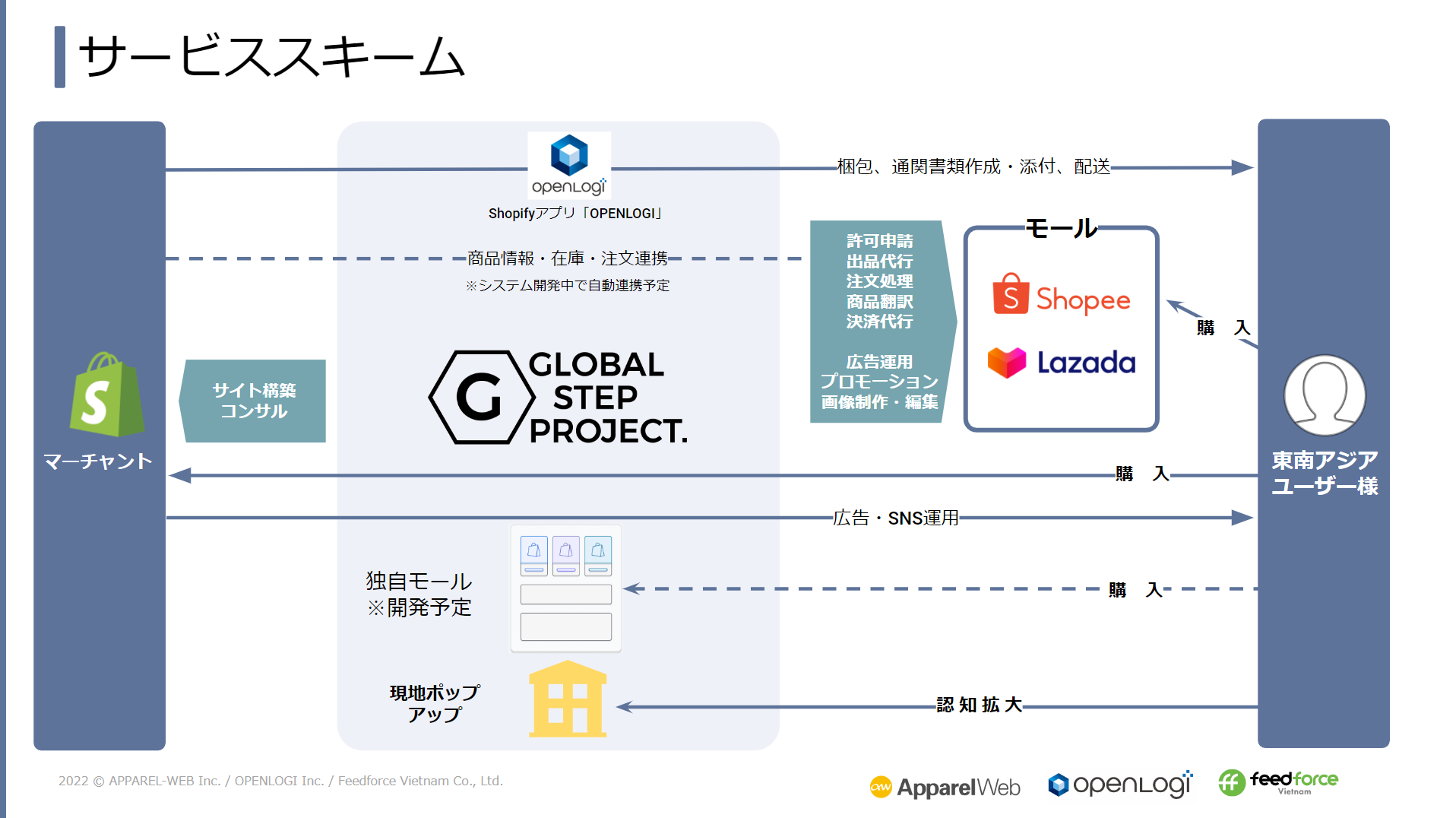 各社の東南アジア拠点を活かし、Shopifyのサイト構築・モール出店に加え、デジタル・リアルの両面で支援範囲を広げていくことを予定しています。