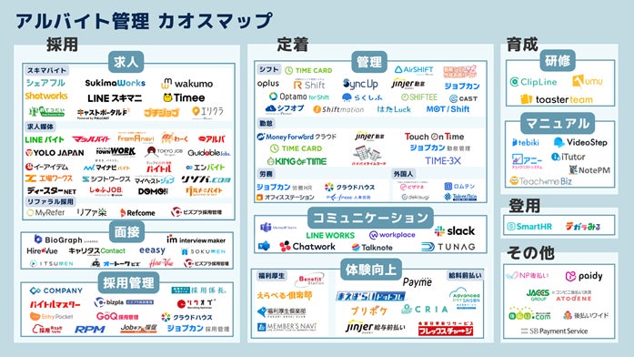 シフト管理サービス『Sync Up』、「店長Lab.(店長ラボ)」にて2022年度最新版 アルバイト管理サービスのカオスマップ(業界地図)を初公開