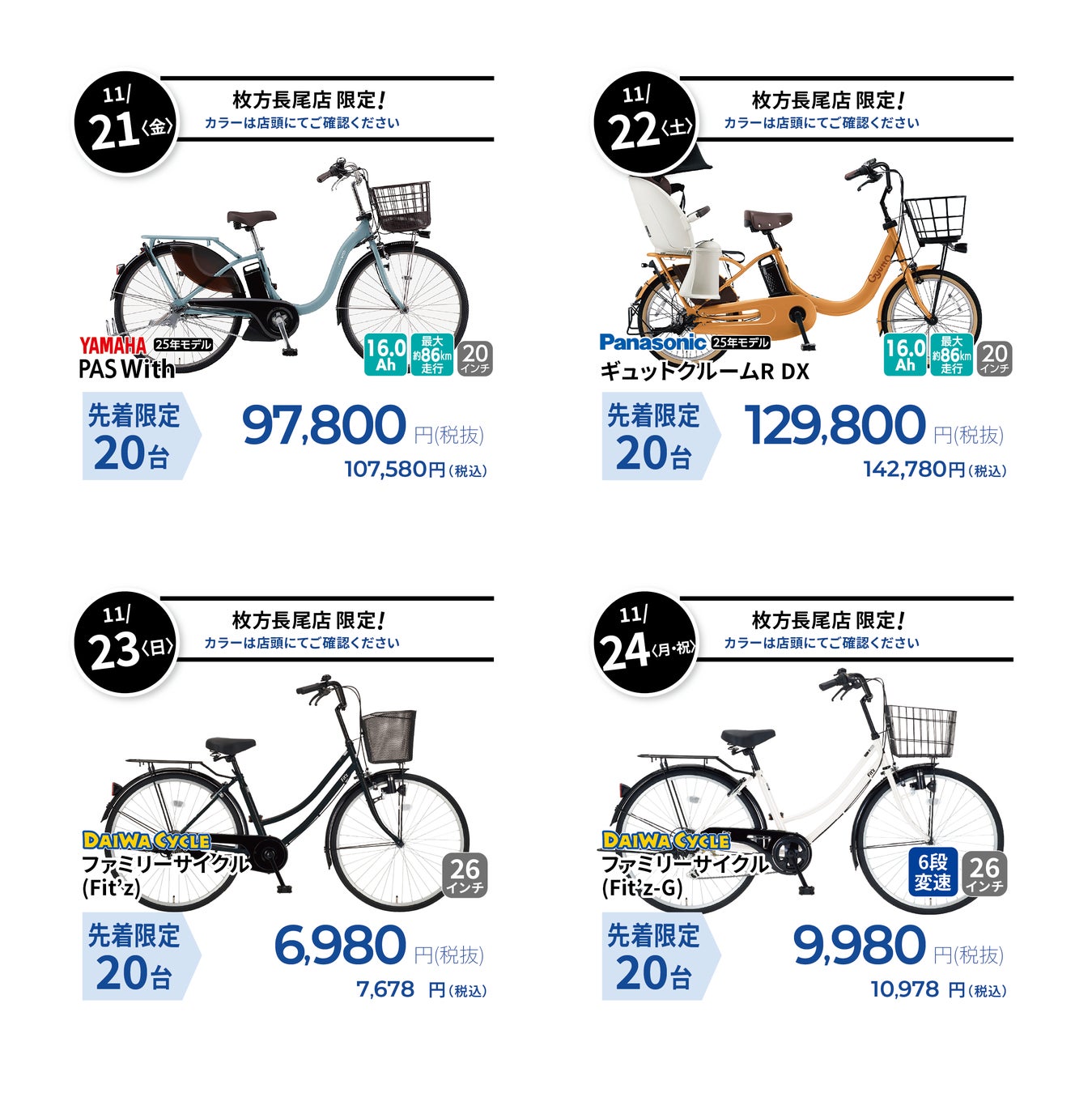 【台数限定で自転車が7,678円!】自転車専門店ダイワサイクル枚方長尾店が11/21(金)オープン!