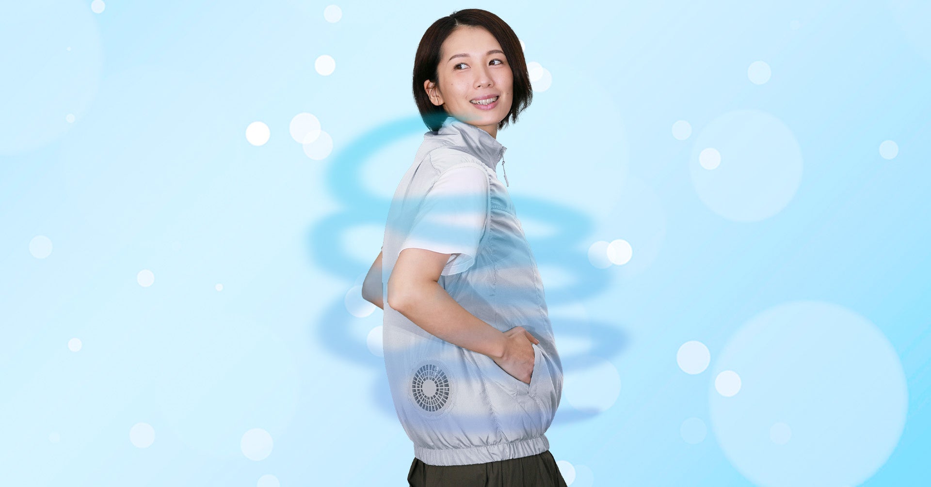 デザインも使い心地も女性に優しいファンベストです。