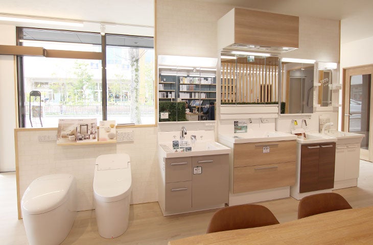特に水まわり商品は、各種メーカーの商品を取り揃え、比較ができるつくりとなっております。