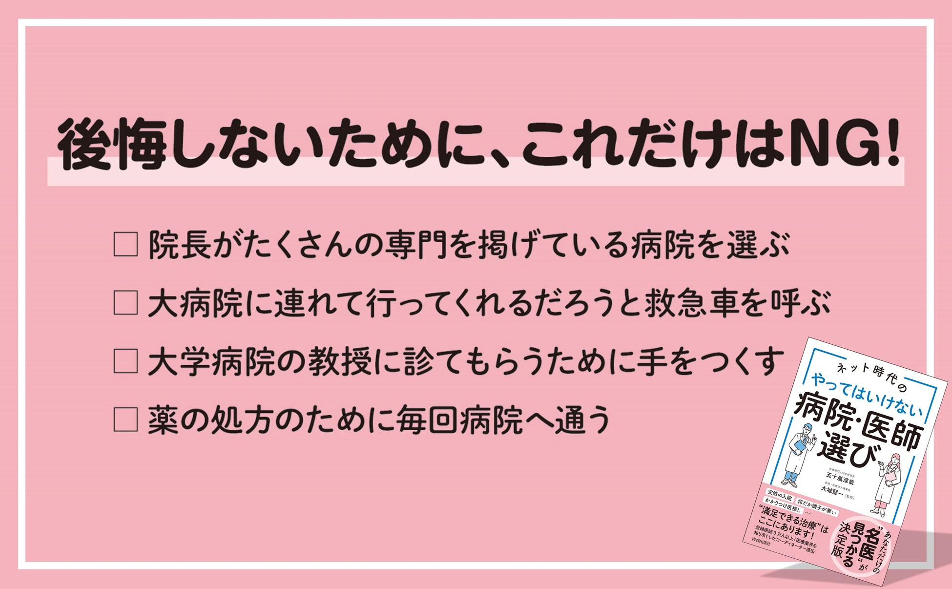 あなただけの“名医”がみつかる決定版!『ネット時代のやってはいけない医師・病院選び』が発売!