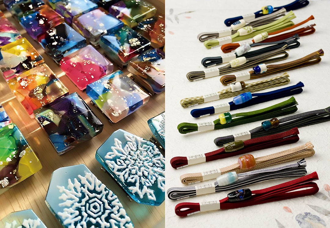 清鈴苑のご来場予約をされた方限定で「ガラス工房りゅうの帯留め&五嶋紐の三分紐」を2,200円(税込)で販売いたします。きものに欠かせない小物セットをお買い得価格でお求めいただけます。