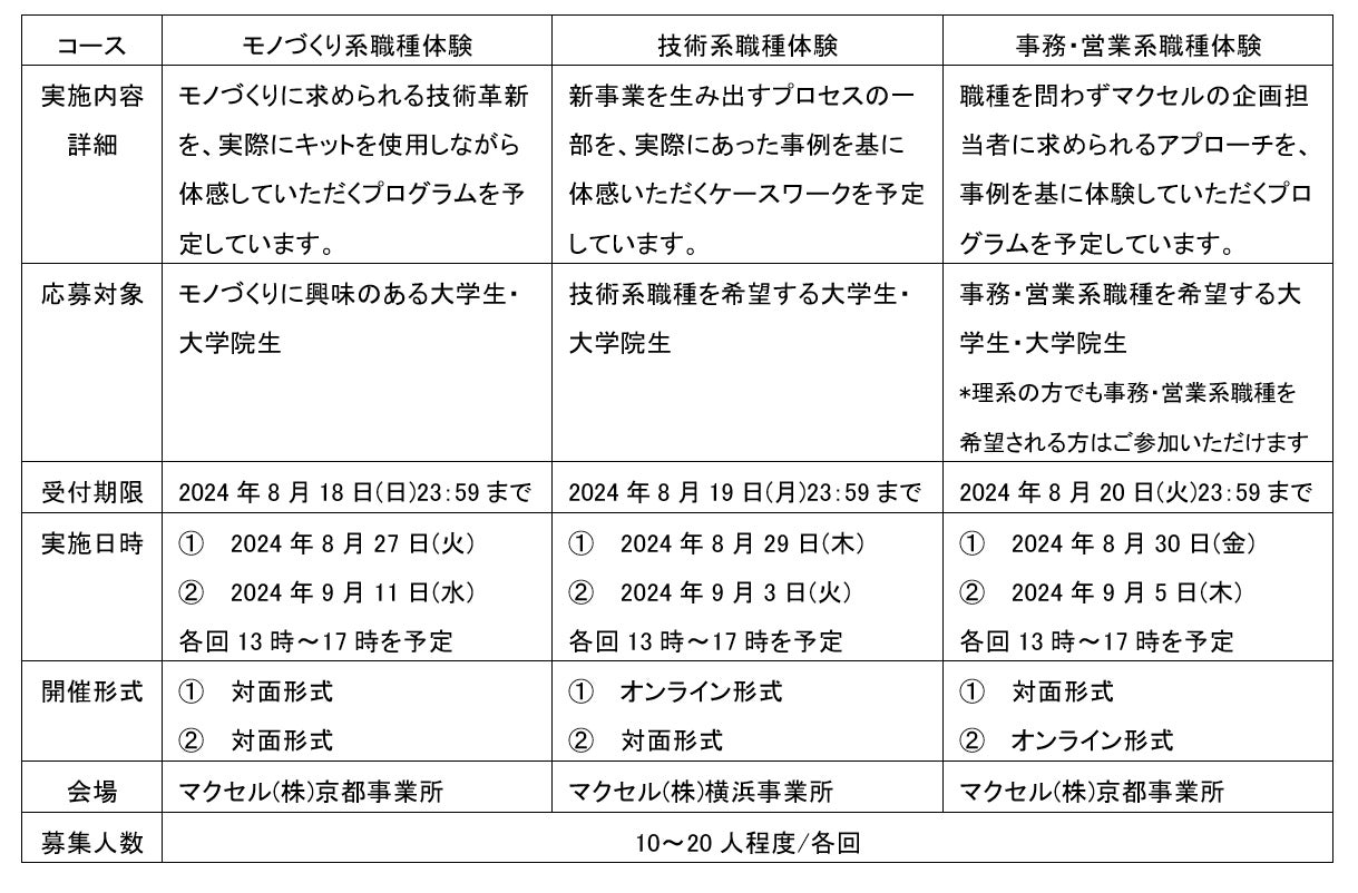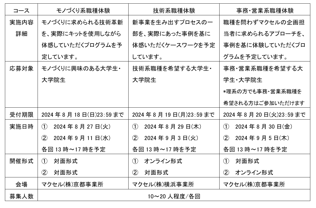 マクセルに興味をお持ちの方、夏の企業研究をご検討されている方は、ぜひ興味のあるコースへお気軽にご応募ください。