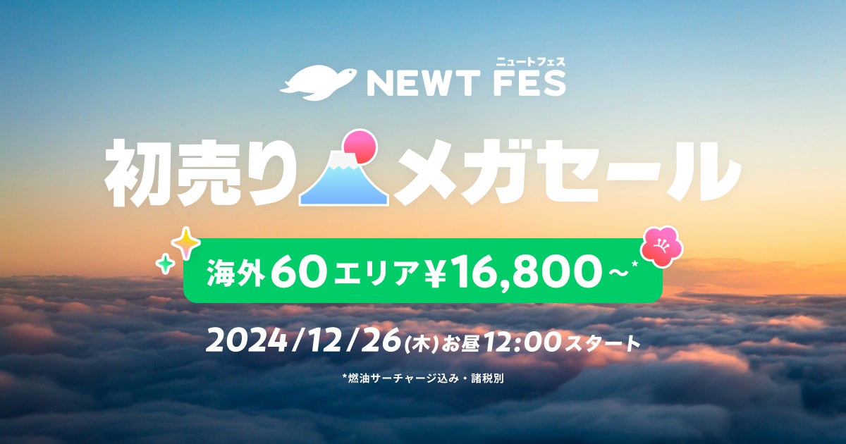 「あたらしい旅行を、デザインする。」をミッションにする株式会社令和トラベル(本社:東京都渋谷区、代表取締役社長:篠塚 孝哉)が運営する海外旅行予約アプリ『NEWT(ニュート)』は、海外60エリアを対象とした「NEWT FES 初売りメガセール」を12/26(木)から開催します。