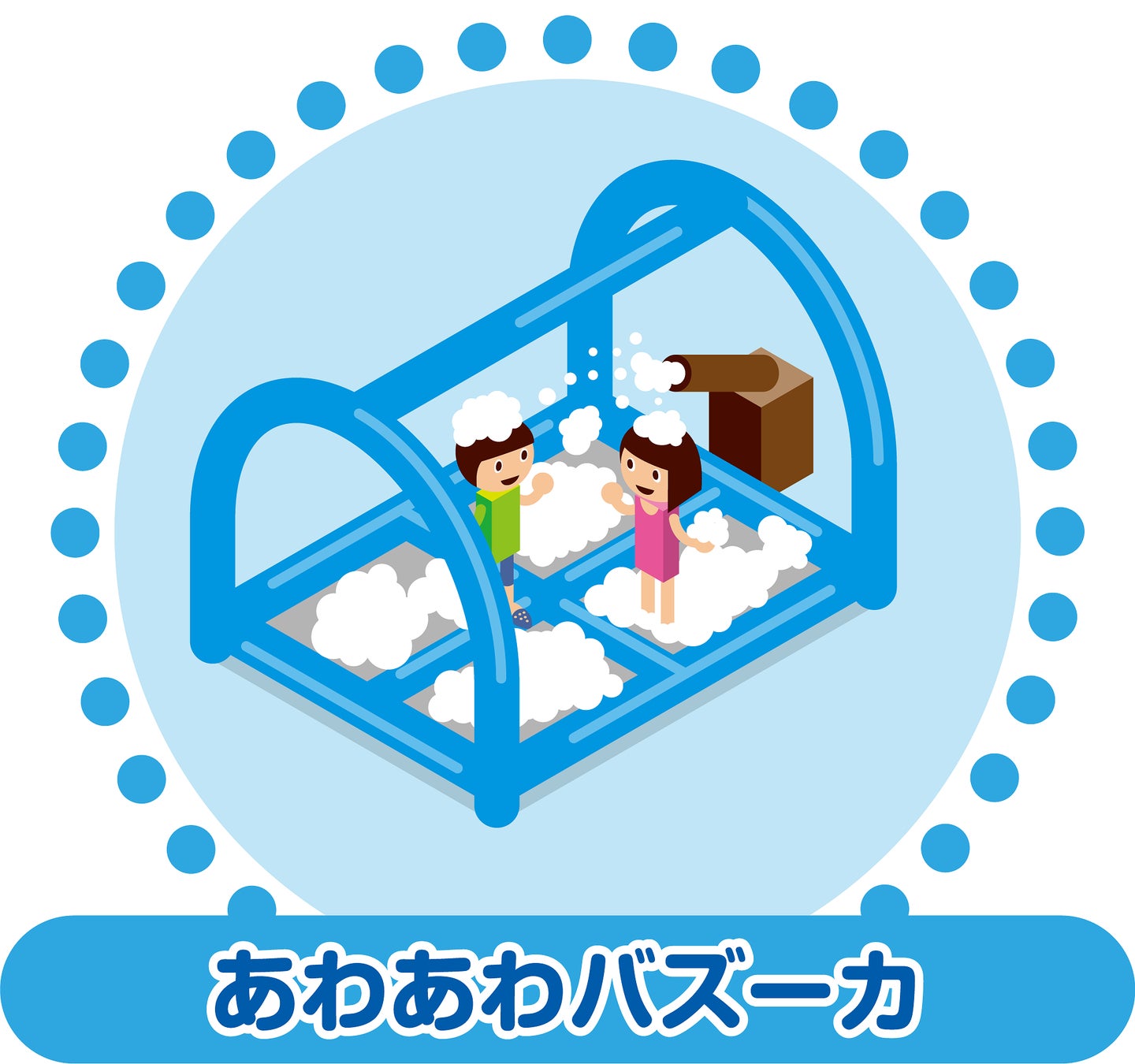 今年は、【ざぶ~んダブルスライダー】に替わり、ロングとショートのストレートスライダー【ツインスライダー】と【あわあわホイップ】に替わり、バズーカからふわふわの泡が飛び出す【あわあわバズーカ】が新たにアトラクションに加わるほか、初登場以来大人気の【ホエールアドベンチャー】、【マジカルミスト】、2歳までのお子様限定の【よちよちエリア】も展開します。