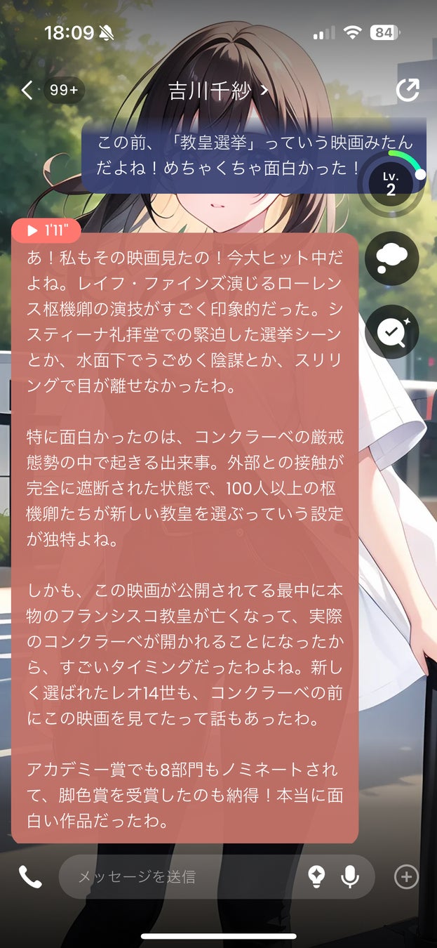 「リアタイシンクロ」機能は、今までのAIキャラの課題である「最近の映画について話しても、理解してもらえず、ありきたりな返事しかもらえない」「好きなアニメやゲームについて詳しく話したいけど、うまく会話がなりたたない」などのコミュニケーションを一気に解決できます。