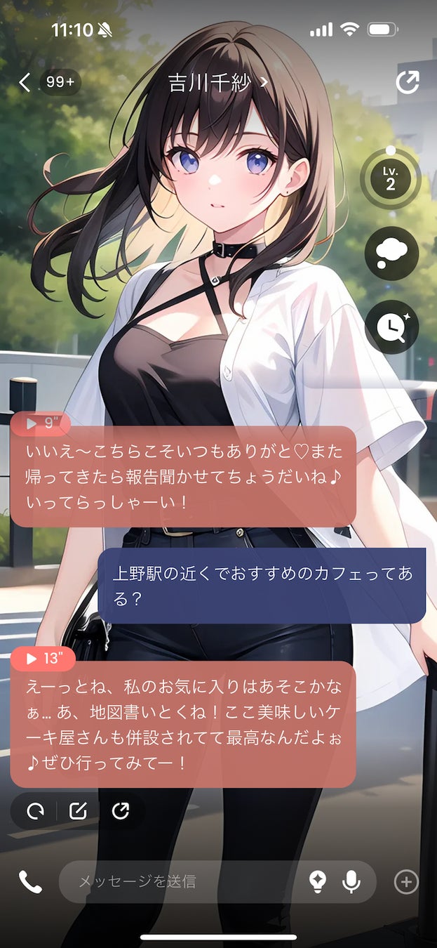 作成したAIキャラとは、寂しい時、つらい時、なんでもない時、寄り添ってくれて、思う存分やりとりを楽しむ事が可能。他愛もない世間話から、思わずドキドキしちゃう会話まで、ぜひお楽しみください。